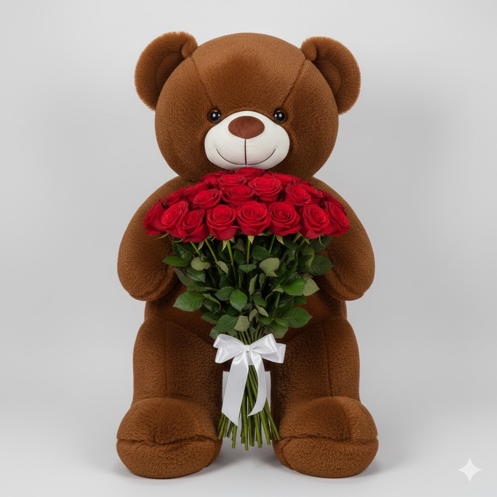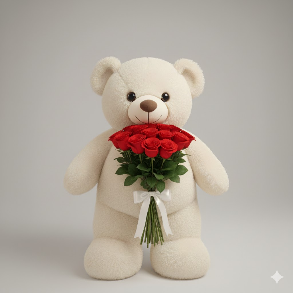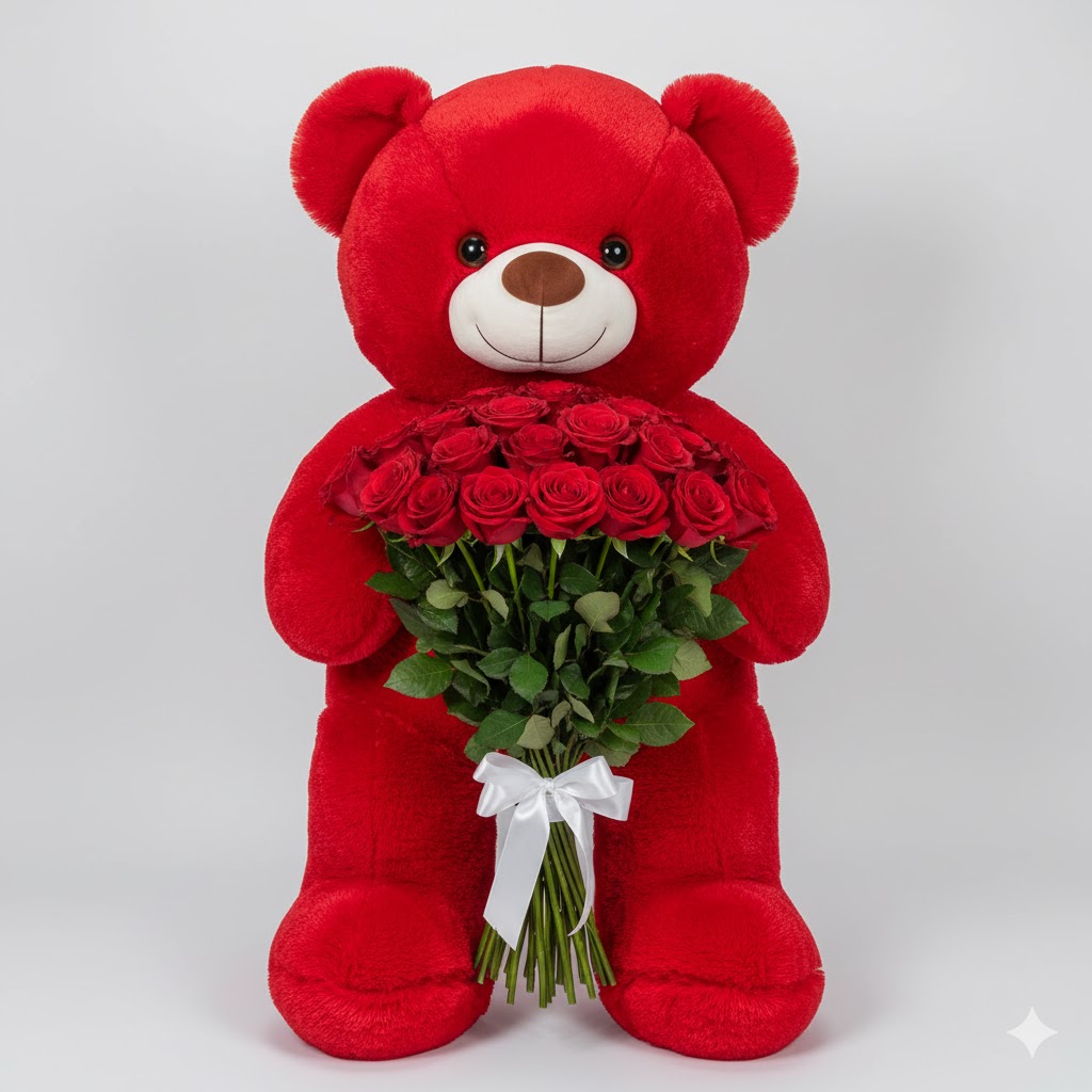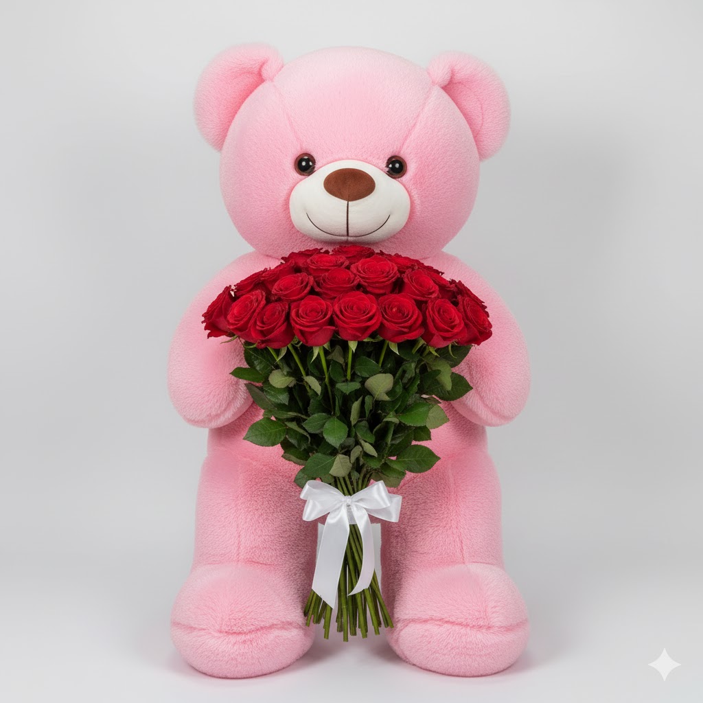 BÜYÜLEYİCİ TAZELİKTE BİR GÜL VE SICACIK YUMUŞAK AYICIKLA BİRLİKTE..